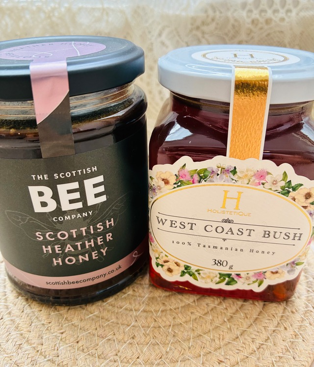 Day and Night ⑤ ¥9000 送料込み 停滞していた流れを呼び覚まし、五感を甘く軽く刺激してくれるエネルギーを待つ蜂蜜のセットです♡ Scottish heather honey × West coast bush honey ✴︎Scottish heather honey 340g✴︎ スコットランドの荒野の風に吹かれながら咲く、紫のヘザーの蜂蜜は、 とろりとしたテクスチャーで、味わいはほろ苦くスモーキーです。 寒い国の黒い蜂蜜は、体の中の冷えて固まった部分(過剰なyangのエネルギー)に 静かに同調し、代謝を促し、再生へと導いてくれます。 ✴︎West coast bush honey 380g✴︎ 手つかずの自然が残るタスマニア西海岸で採れた、 土地固有の花々の風味が凝縮した最高級のハチミツです。 飲み物にひとさじ加えれば、花々の余韻がふんわり広がります。 自然が生み出した純粋でフローラルで軽い甘さをお楽しみください。 Scottish heather honey 期限2026年3月 West coast bush honey 期限2026年8月